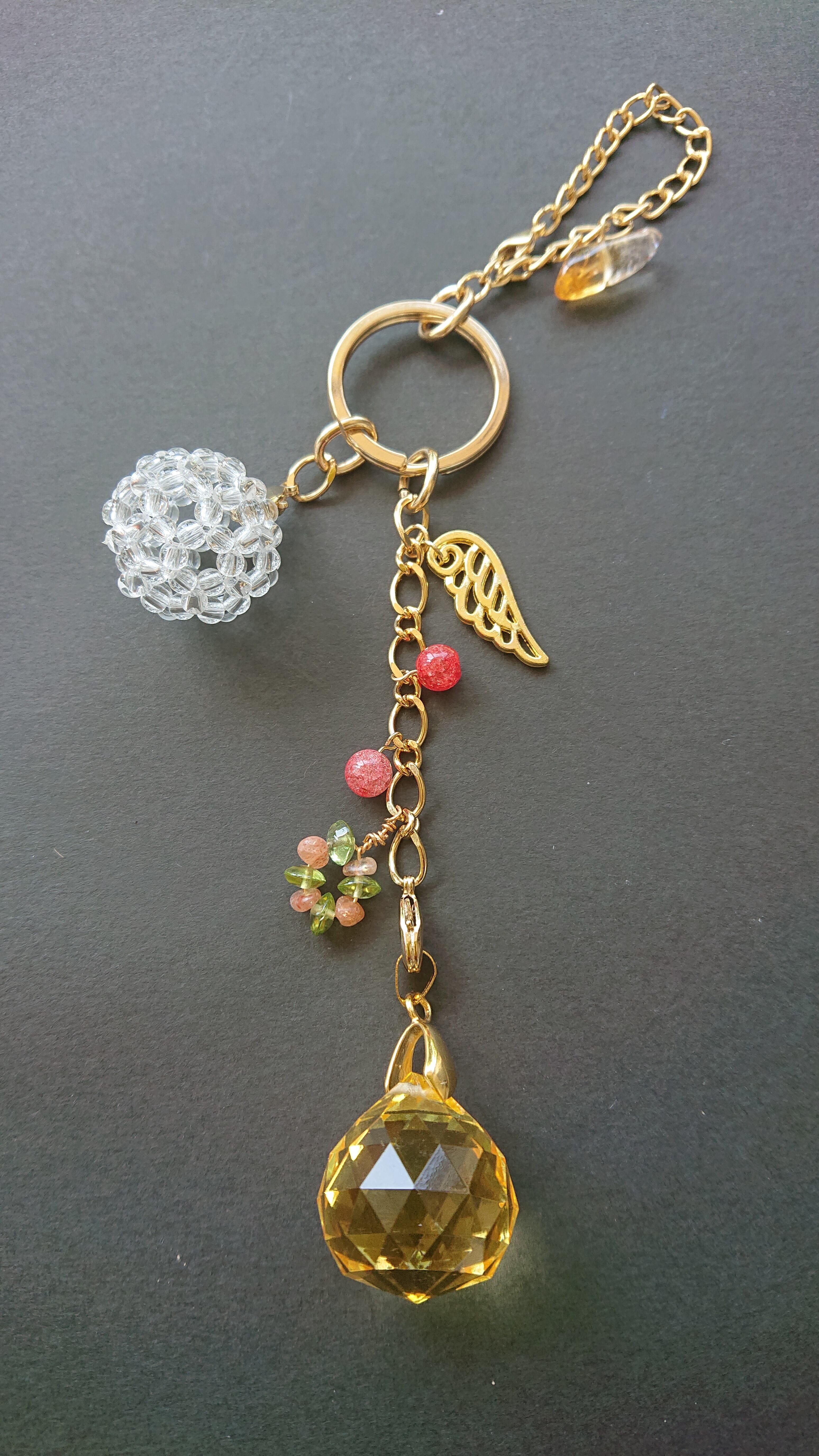 バッキーボール(フラーレン)と天然石を入れ、サンキャッチャーに組み合わせました。