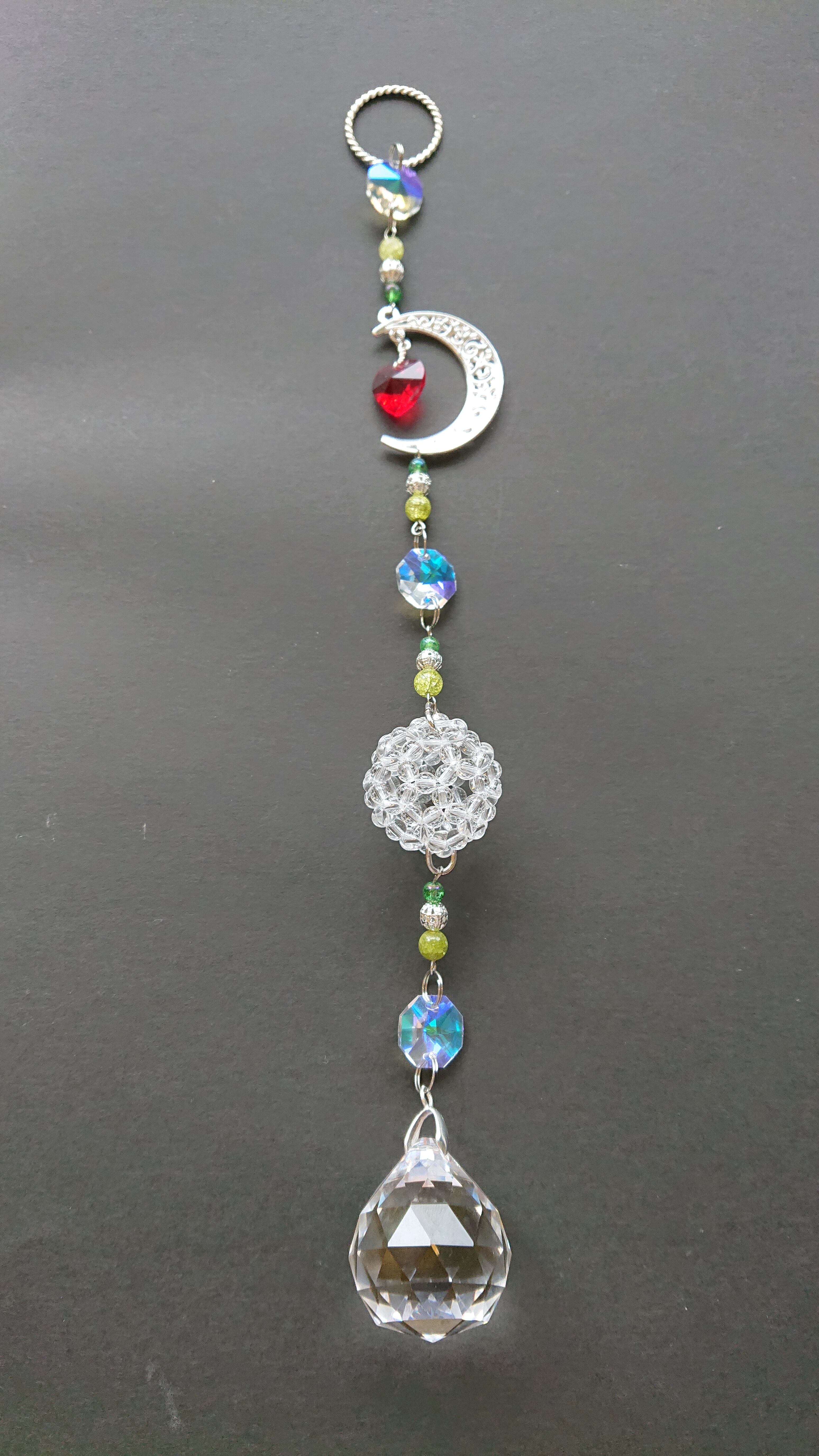 バッキーボール(フラーレン)と天然石を入れ、サンキャッチャーに組み合わせました。